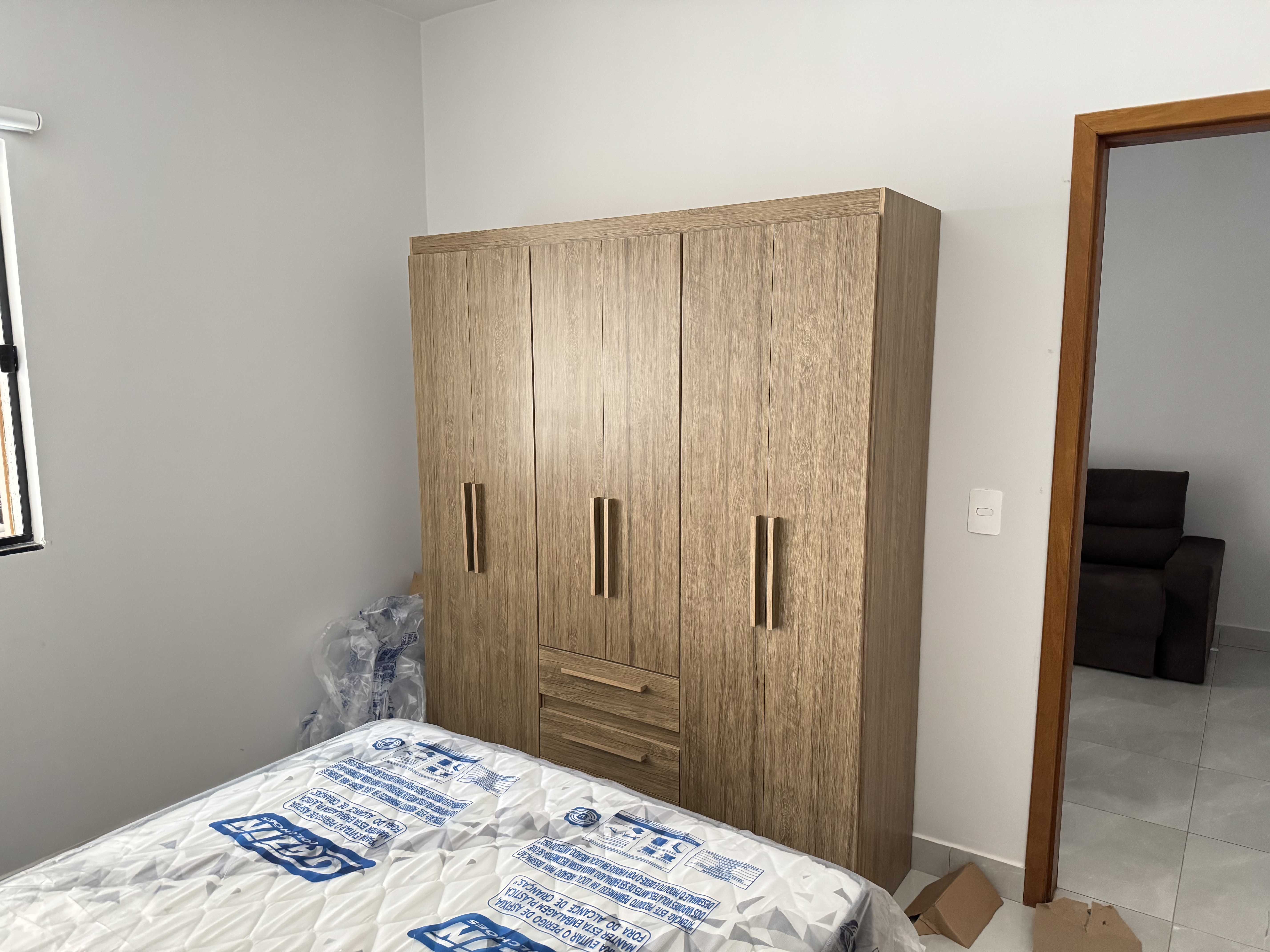 OFERECE: Cozinha planejada com móveis - Sala estar/jantar com tv, mesa e sofá - quarto com cama e guarda roupas - lavanderia com armário e tanque.